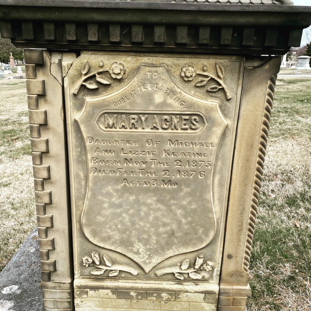 Mary Agnes was the first child of Michael and Elizabeth (Guilfoyle) Keating. She was born on November 2, 1875, and passed away on February 2, 1876 at the age of 3 months.